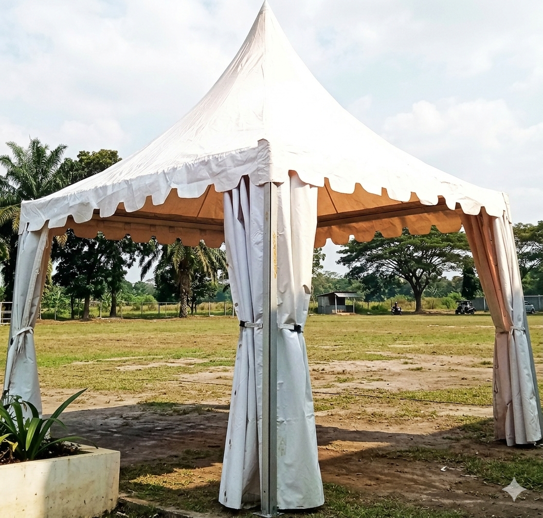 Tenda sarnafil dengan ukuran 3×3, untuk acara stan pameran dan bazar, jangan biarkan cuaca buruk merusak acara mu yang sudah di rencanakan